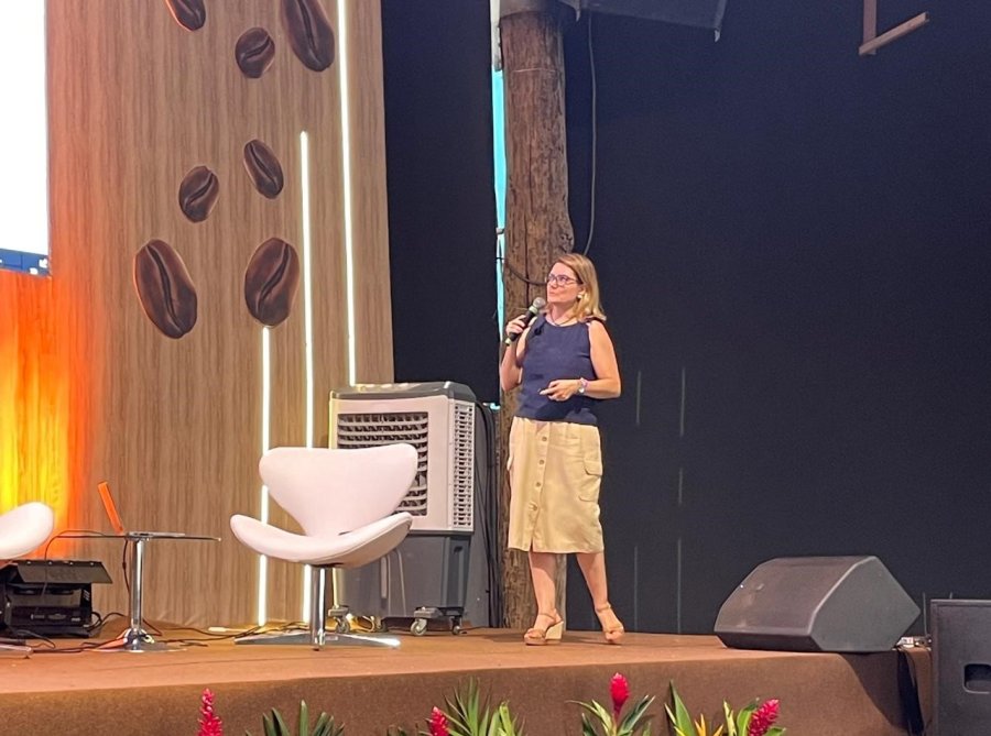 Na 2ª Feira Tecnológica Robustas Amazônicos, a chefe regional do INPI, Milene Dantas, ressaltou que o registro de marca é fundamental para expandir mercados e valorizar o café rondoniense.