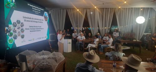 Produtores rurais, parceiros, representantes do setor agropecuário e colaboradores se reuniram no dia 29 de maio, no estande da Embrapa na 12ª Rondônia Rural Show Internacional 2025, em Ji-Paraná, para celebrar os 50 anos de atuação da Embrapa em Rondônia. A cerimônia marcou meio século de contribuição da Unidade para o desenvolvimento sustentável na Amazônia.