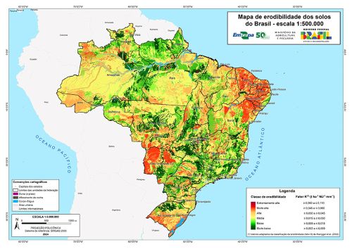 O novo mapa está na escala 1:500.000, compatível para usos em nível estadual ou de grandes bacias hidrográficas. Nele, os solos de todo o País foram classificados, a partir de uma avaliação semiquantitativa, quanto à sua erodibilidade em seis classes: muito baixa, baixa, média, alta, muito alta e extremamente alta, sendo que cada classe está relacionada a um intervalo de valores correspondentes ao índice de erodibilidade do solo, o chamado de fator K.